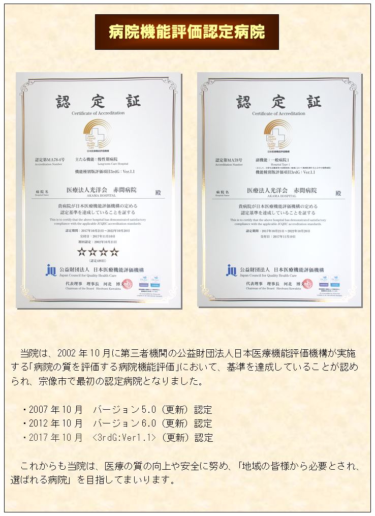 病院機能評価結果(日本医療機能評価機構ホームページが別ウインドウで表示)